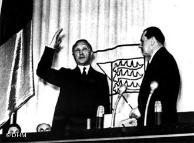 На фото: Конрад Аденауер провозглашает создание ФРГ.
